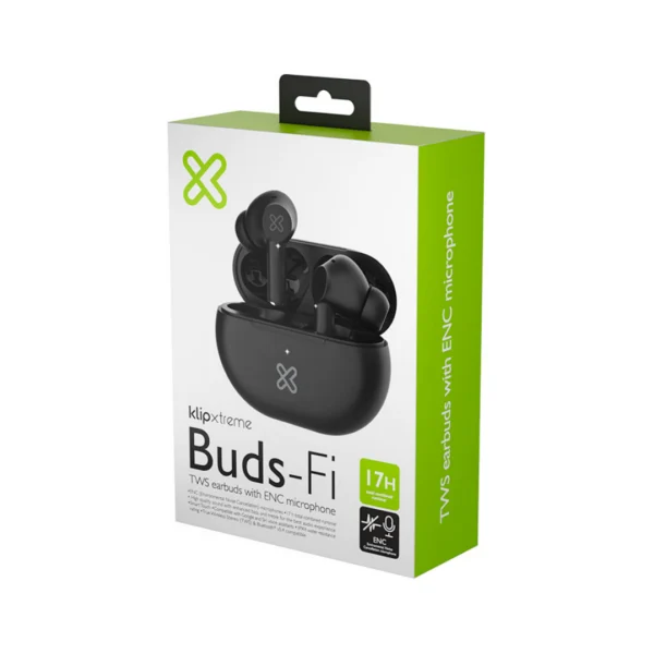 Audífonos Klip Xtreme Buds-Fi KTE-015GR True Wireless con conectividad Bluetooth 5.4, micrófono con cancelación de ruido ambiental (ENC), controles táctiles inteligentes, resistencia al agua IPX4 y hasta 17 h de autonomía total entre auriculares y estuche. Ideales para música, llamadas y uso diario con comodidad y libertad sin cables. Disponible en SUTOA El Salvador.