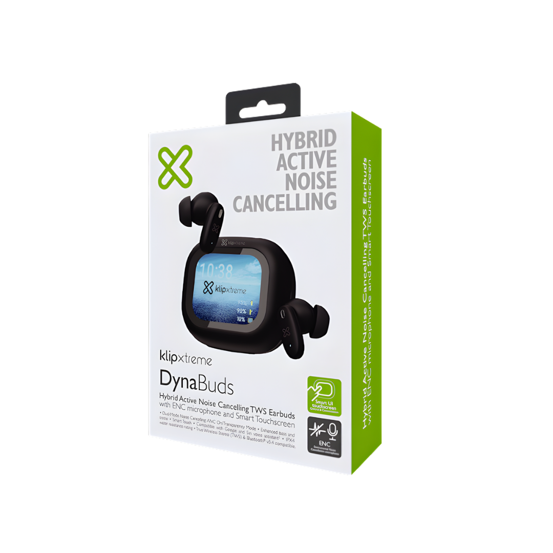 Los audífonos Klip Xtreme DynaBuds KTE-800 son earbuds True Wireless con tecnología avanzada de cancelación activa de ruido (ANC) y micrófono con cancelación de ruido ambiental (ENC), pensados para ofrecer un sonido claro y envolvente tanto en música como en llamadas. Su diseño compacto y controles táctiles hacen que su uso sea práctico y confortable en el día a día.