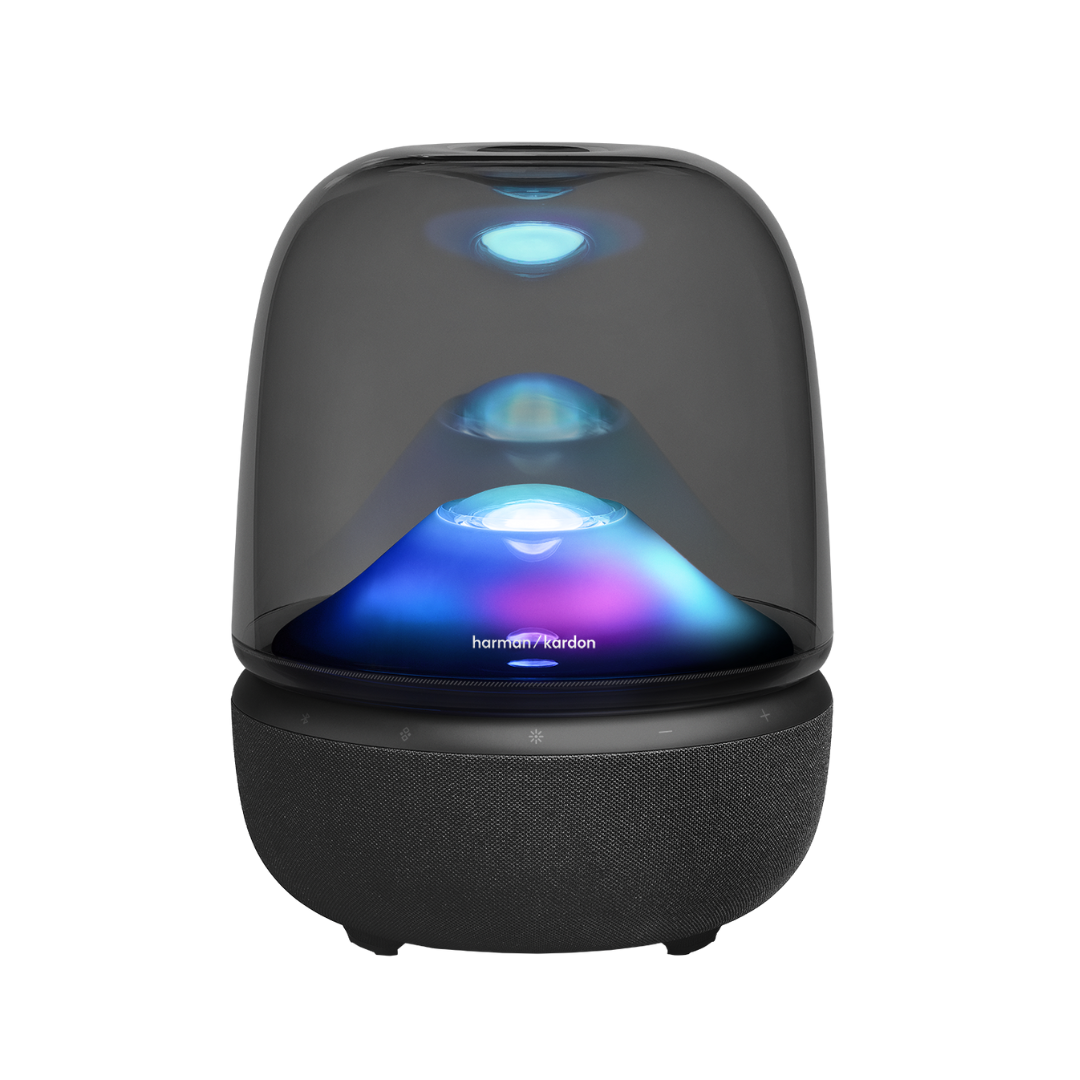 La Harman Kardon Aura Studio 5 eleva tu experiencia musical al combinar un audio potente y detallado con un sistema de iluminación ambiental que transforma el entorno. Su diseño icónico con cúpula transparente convierte cada reproducción en una experiencia que se puede escuchar, ver y sentir.
